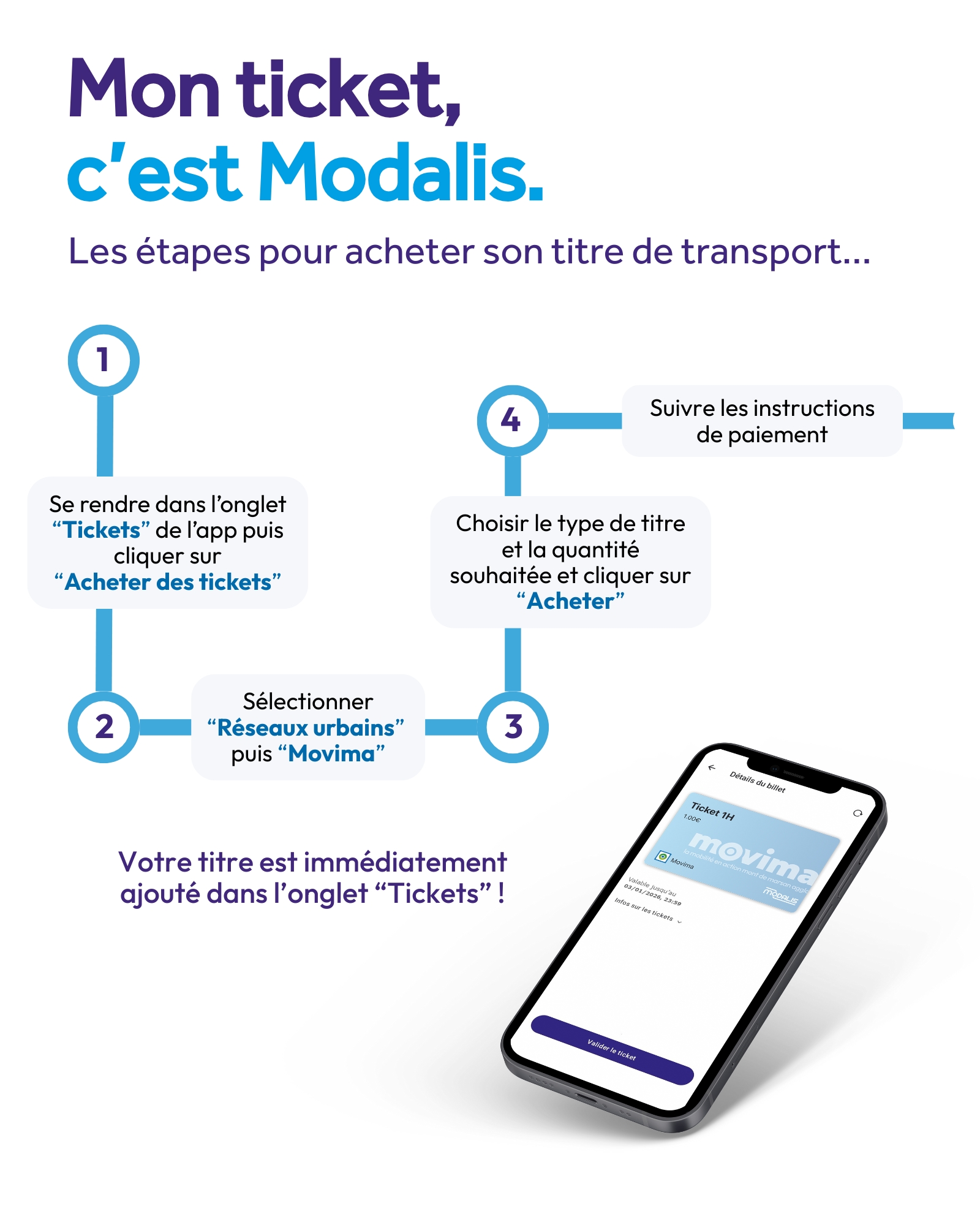 Vous pouvez aussi acheter votre titre de transport et le valider sur votre smartphone grâce à l’appli Modalis.